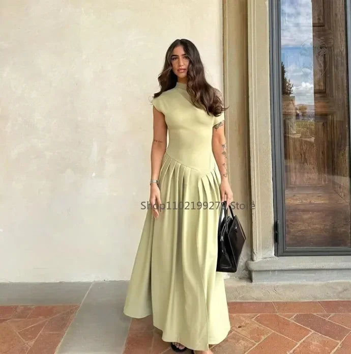 This elegant green pleated dress offers a refined silhouette with its delicate pleating, enhancing movement and texture. Designed for women seeking a sophisticated yet comfortable outfit, it pairs effortlessly with both formal and semi-formal occasions. The rich green hue adds a touch of freshness and versatility to your wardrobe, making it a timeless choice for elegant dressing.